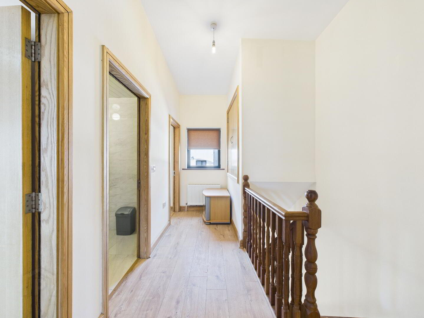 Stairs carpeted. Large spacious landing (13ft 10 x 4ft) with timber flooring. Radiator. Window. Built in storage unit.