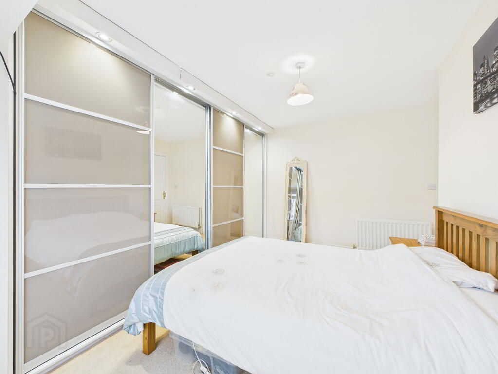 Carpet. Radiator. Window. Two built in wardrobes.