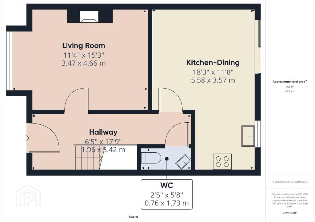 Guest toilet: 5ft 8 x 2ft 5
