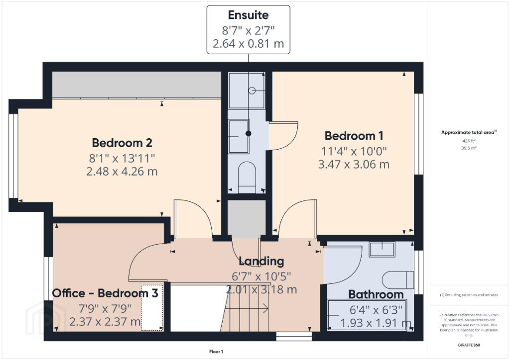 Spacious stairs and landing carpeted. 10ft 5 x 6ft 7