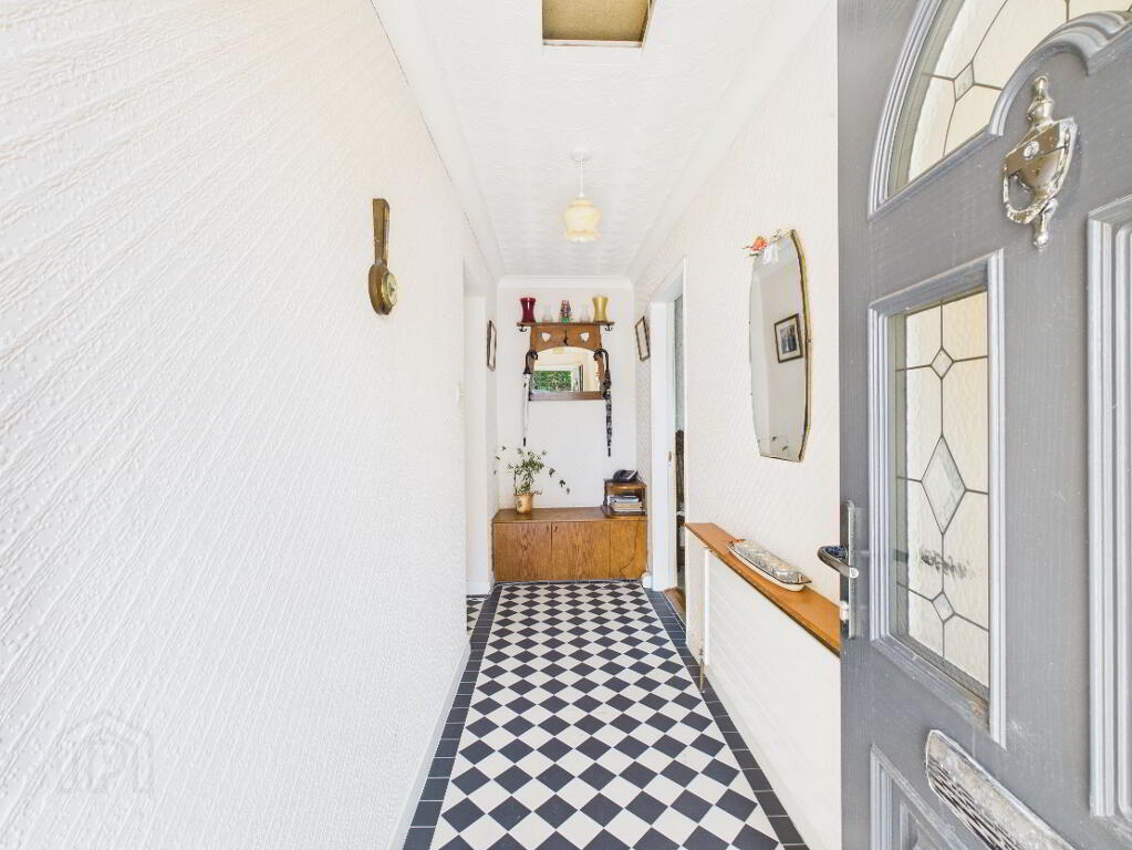 Mosaic tiled flooring. Radiator. Access to the attic.