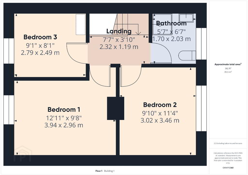 Spacious stairs and landing carpeted. 7ft 7 x 3ft 10