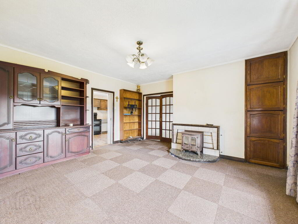 Carpet. Built in storage unit. Window. Radiator.Built in wood burning stove with tiled surround.