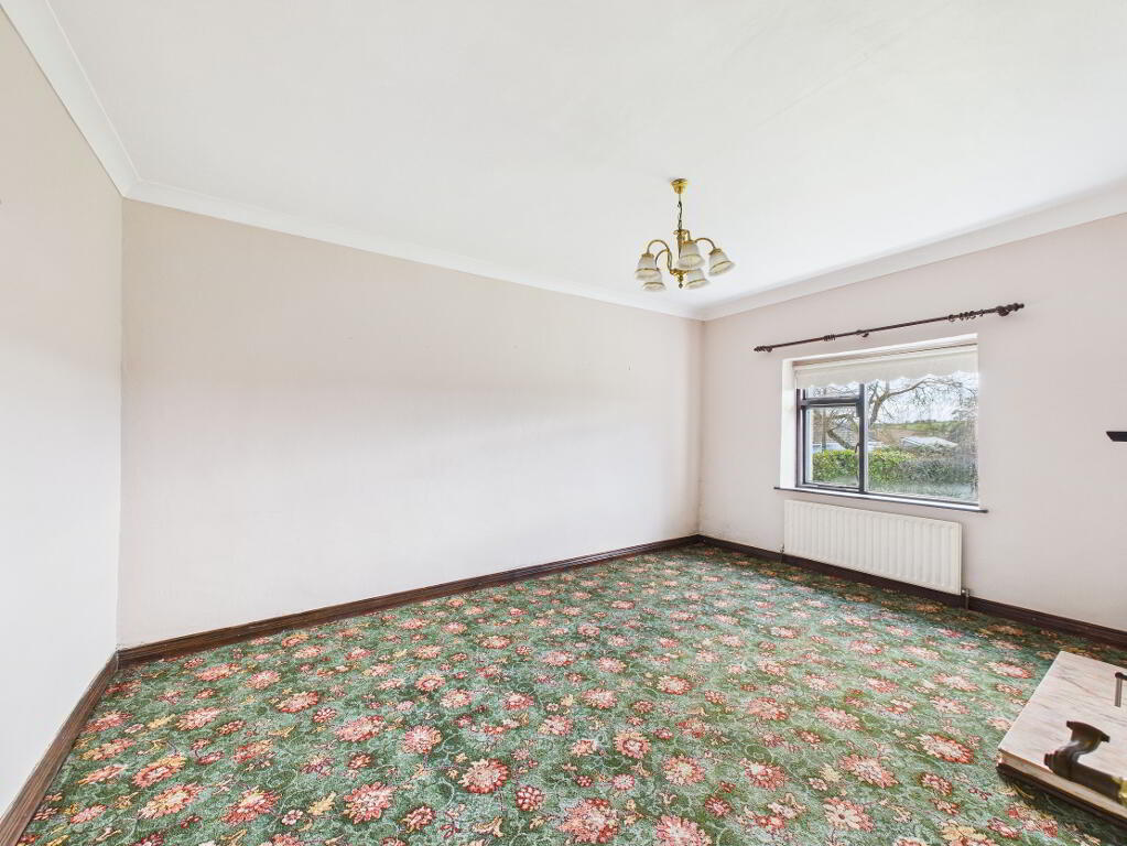 Carpet. Marble fireplace with timber surround and built in wood burning stove. Mirror. Window. Radiator.