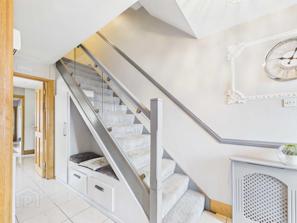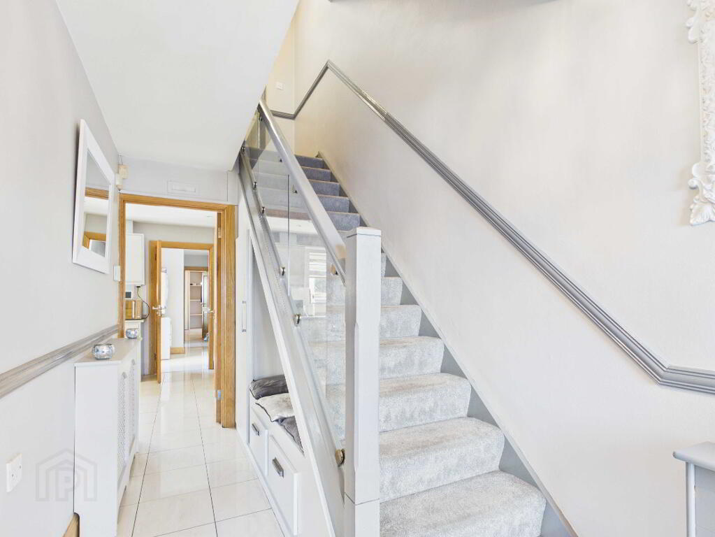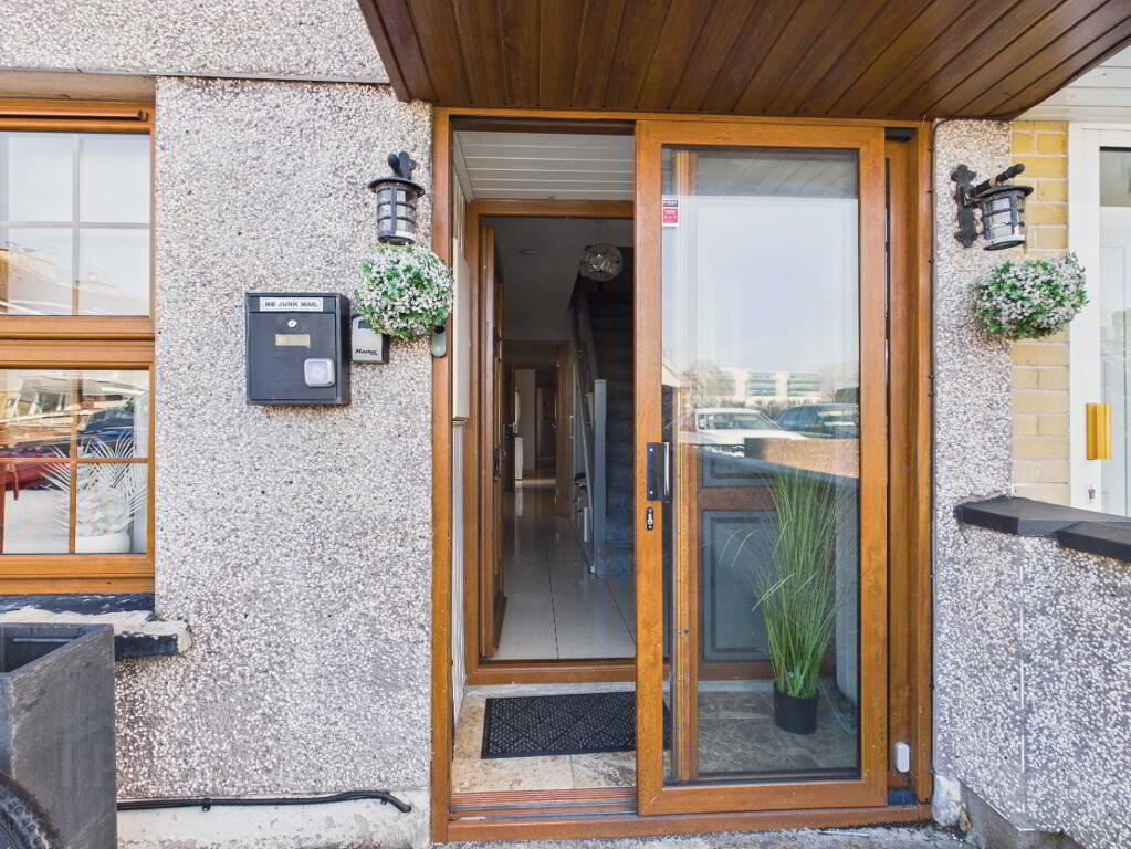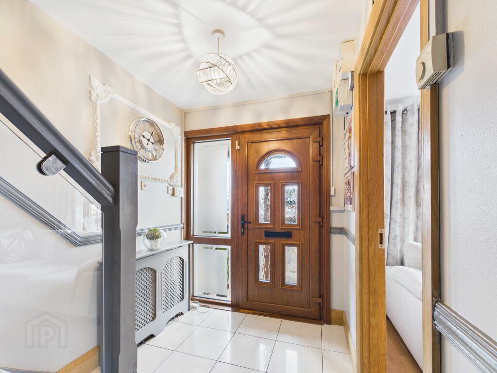 PVC entrance door with side glass panels. Letter box. 2 Radiators with covers. Dado rail.