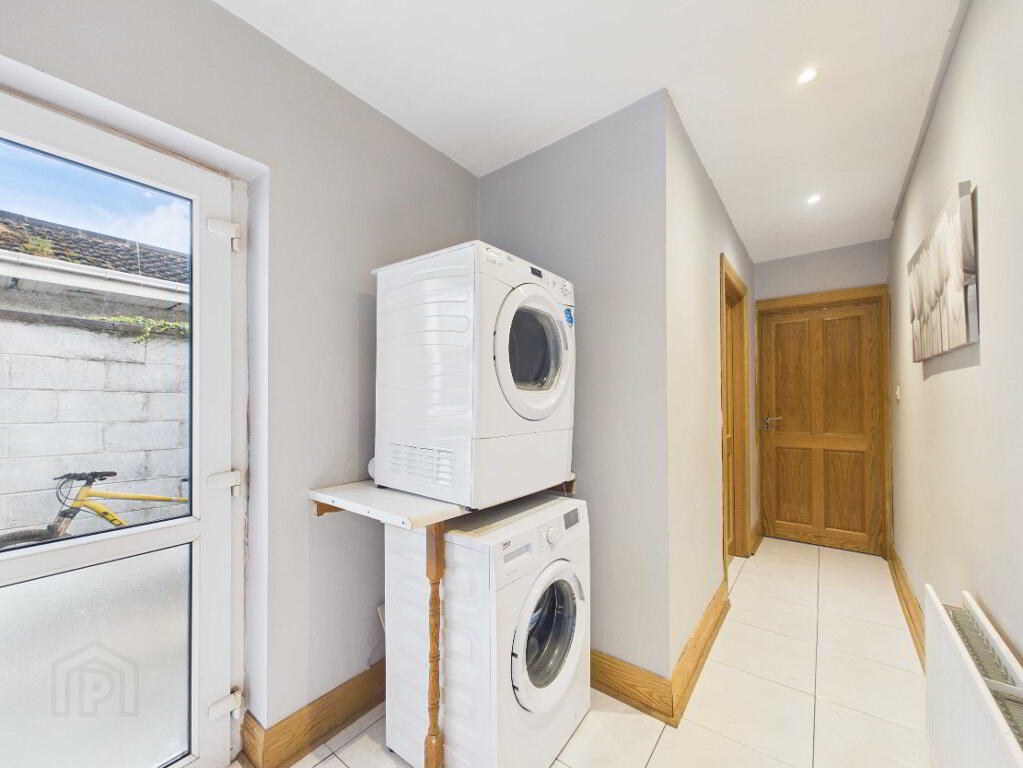 Tiled flooring. Plumbed for washing machine and dryer. Radiator. Door to side of house.
