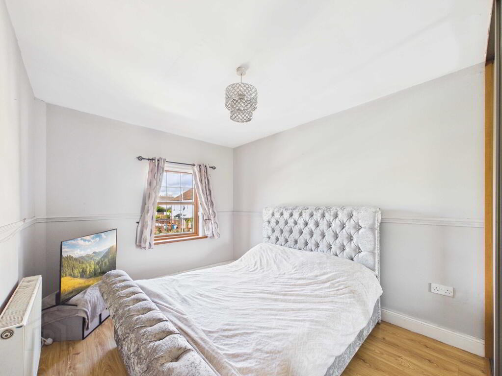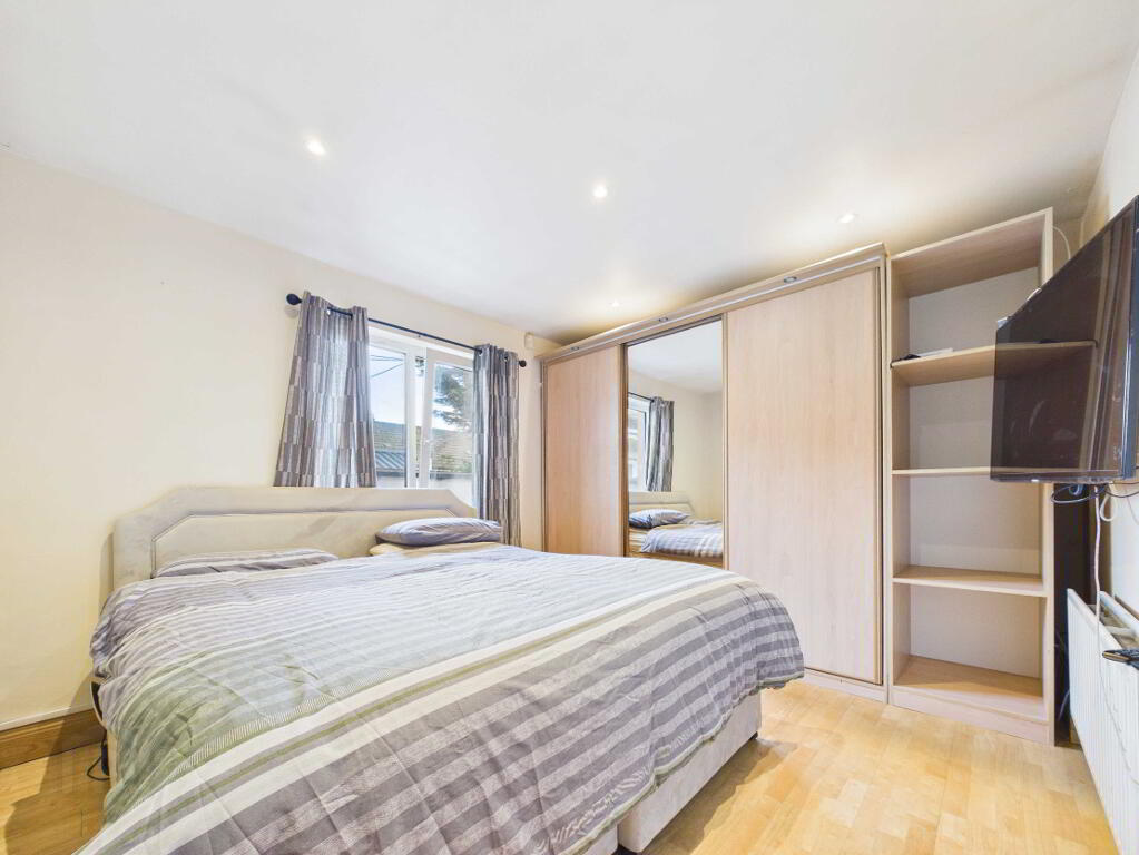 Laminate timber flooring. Window. Radiator. Built in mirrored slide door wardrobe. Dado rail.