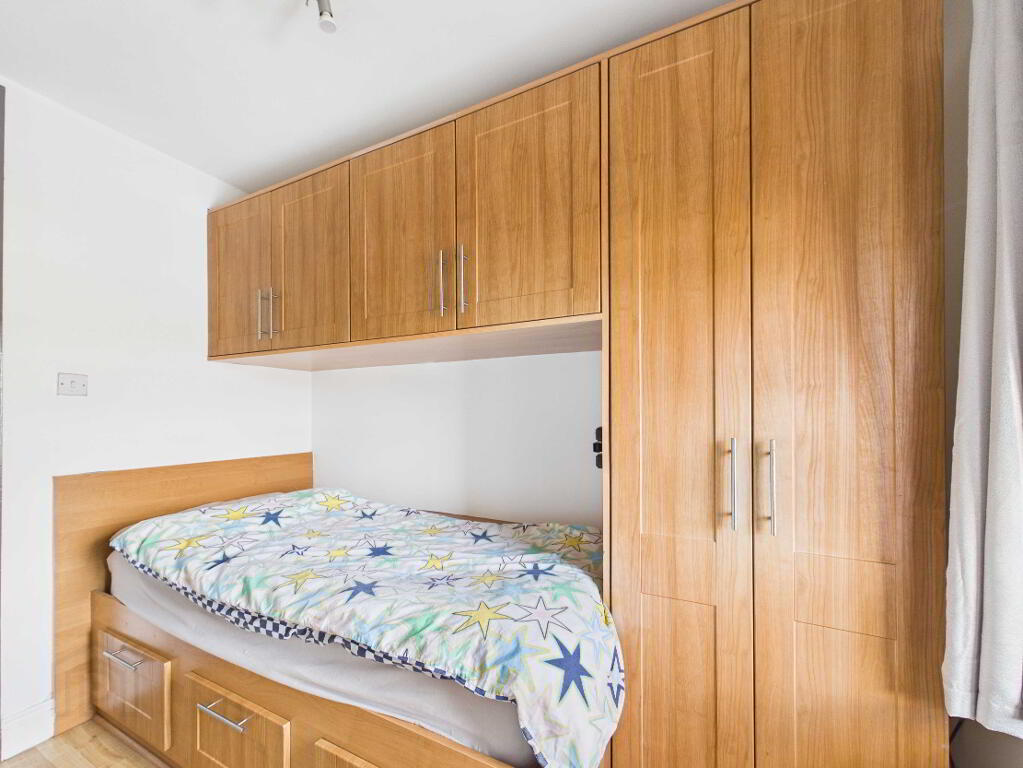 Laminate timber flooring. Window. Radiator. Built in single bed unit with built in storage.
