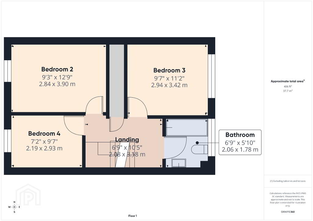 Bathroom: 6ft 9 x 5ft 10